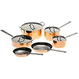 Constructed of copper, aluminum, and stainless steel, the stockpot, skillets, sauté pan, and saucepans in this 10-piece set perform superbly, stand out handsomely in the kitchen and dining room, and will outlive their lifetime warranty against defects. This is cookware for serious cooks who appreciate three-ply advantages. Copper exteriors conduct heat quickly and uniformly and respond to minute temperature changes. Aluminum cores extend up the sides to cook food evenly and retain heat. And interiors of 18/10 stainless-steel won't discolor, corrode, or react with food.